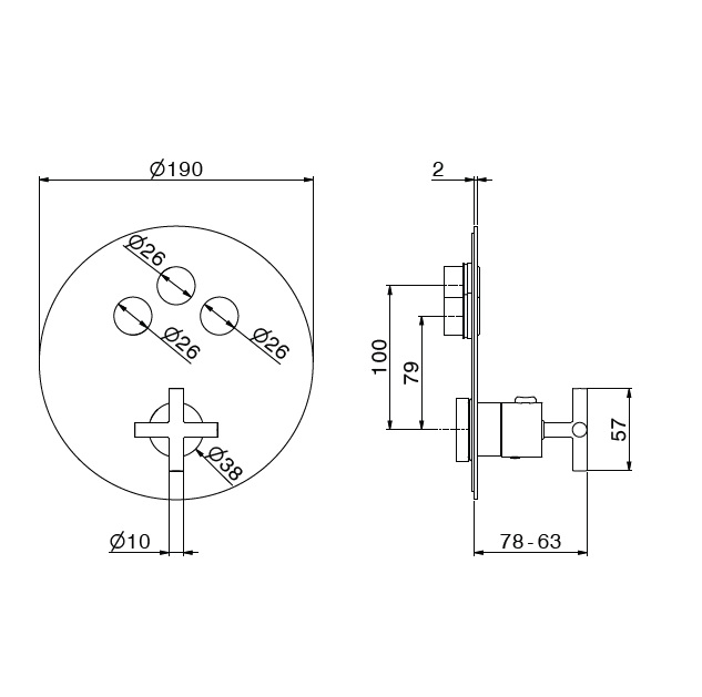 BLINK 70453E/27752 3-väljundiga termostaatsegisti ON/OFF lülitiga- kroom, matt must, pronks, PVD- vasene pronks, must metall, harjatud hele kuld, läikiv kuld