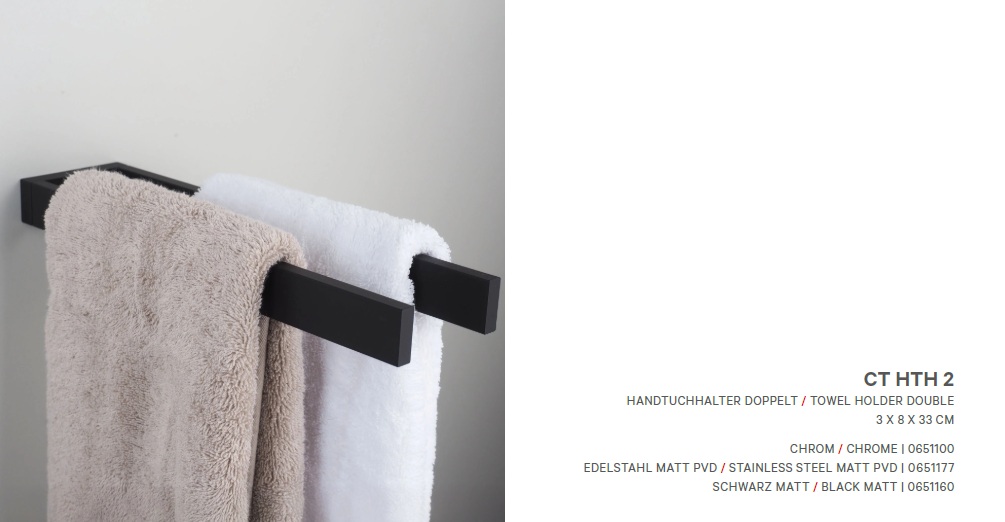 CONTRACT CT HTH2 2ne rätikureeling L-330x80x30mm- kroom, matt must, PVD matt roostevaba teras