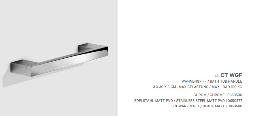 CONTRACT CT WGF vannikäepide, 300x60x30mm, max koormus 150 kg- kroom, matt must, PVD matt roostevaba teras